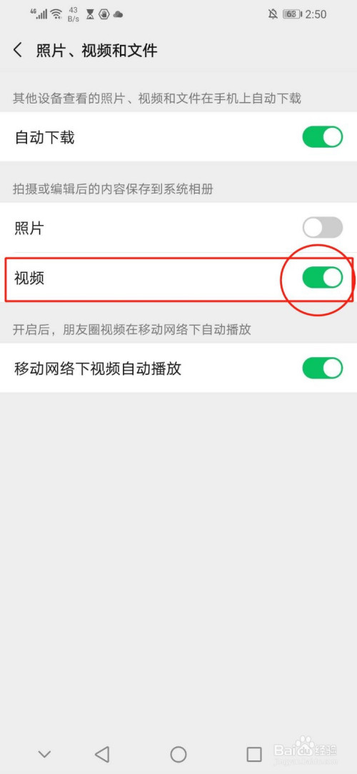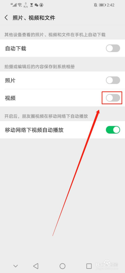 6.点击“照片、视频和文件”界面第三行的“视频”