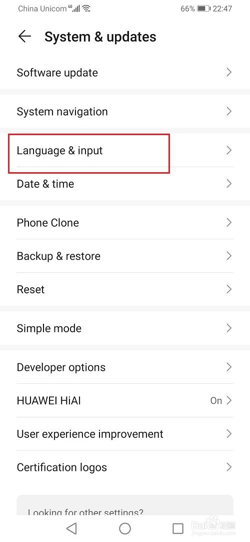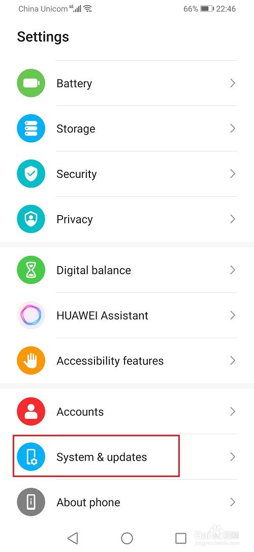 第一步打开华为手机,点击Settings,然后点击System & updates