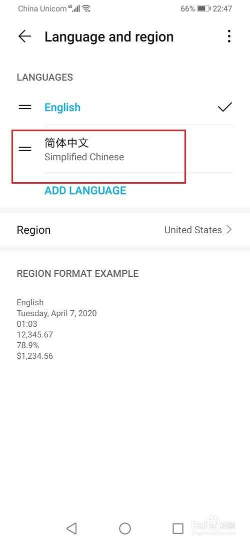 第五步点击简体中文之后,就当作功将华为手机英文改当作中文了