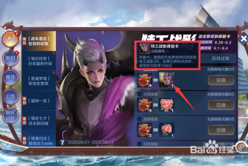 - 获取奸细战影体验卡