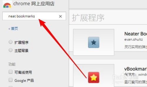 然后在打开的页面左上角的搜索框,输入Neat Bookmarks的关头词进行搜刮