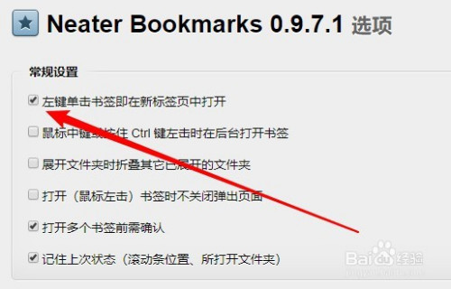 接着在打开的设置项中找到并勾选左键单击书签即在新标签页中打开的设置项就可以了。