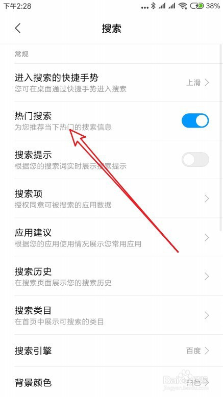 接着在打开的搜刮设置页面,找到热点搜刮的设置项。