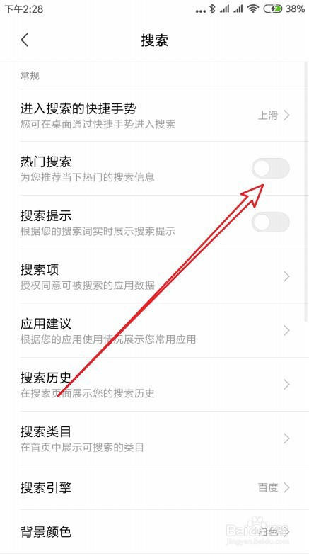 点击设置项后面的开关,把它设置为封闭的状况。