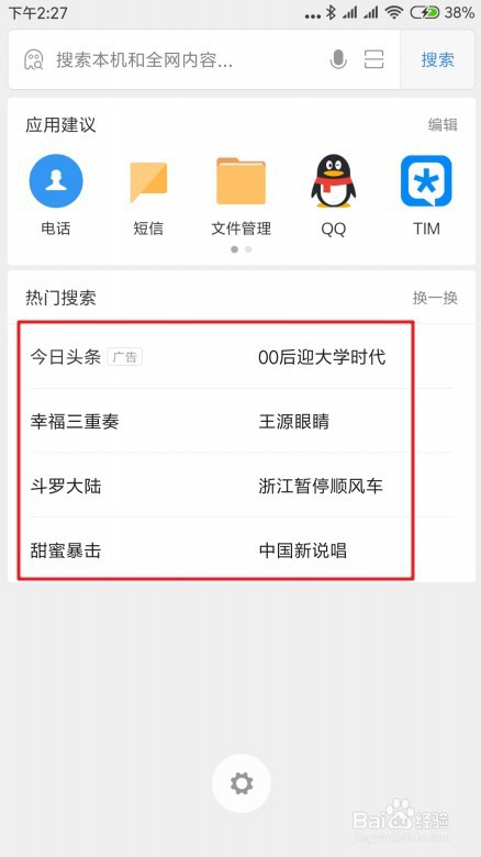 在小米手机的全局搜刮页面,可以看到热点搜刮的关头词。