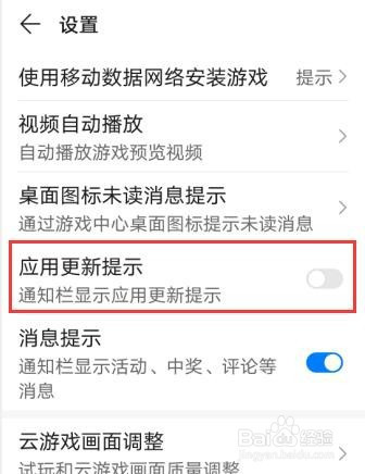 设置界面找到【应用更新提醒】。