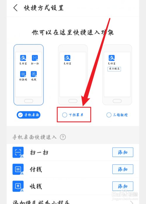 之后点击快捷体例设置中的【下拉菜单】选项。
