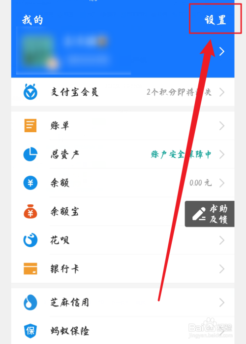 首先我们运行支付宝点击我的页面的【设置】按钮。