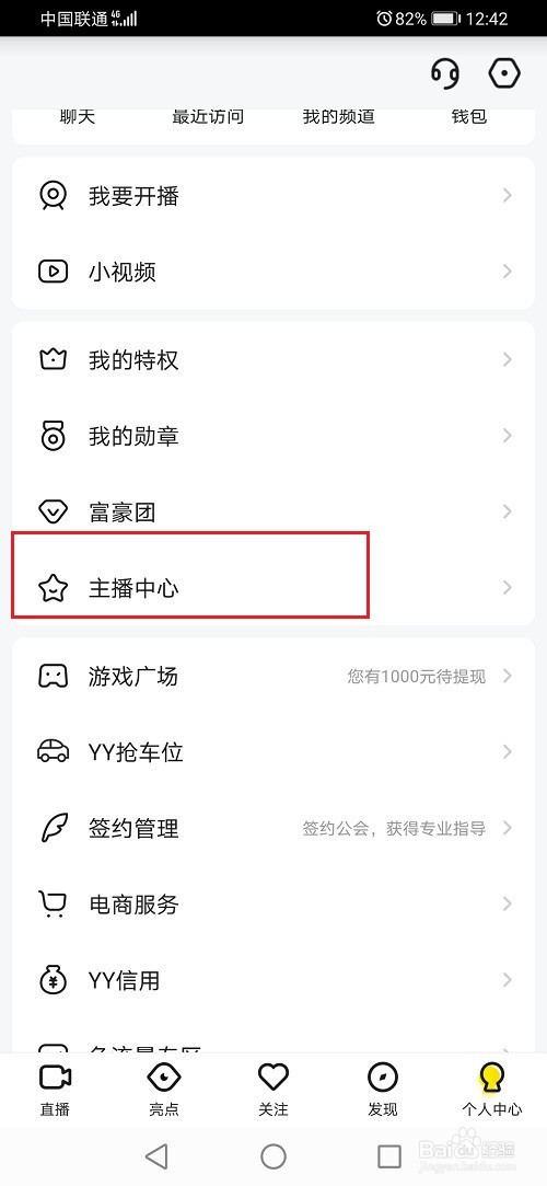 第三步在本家儿播中间,然后点击本家儿播当作长系统
