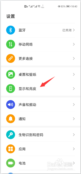 在列表中点选“显示与亮度”。