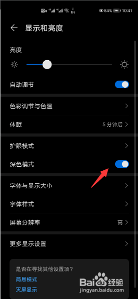 在默认环境下“深色模式”是处于封闭状况的。