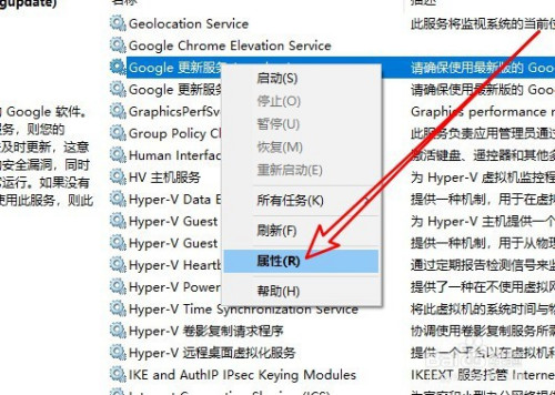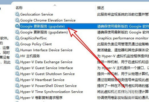 然后在打开的办事列表中找到Google更新办事的办事项。