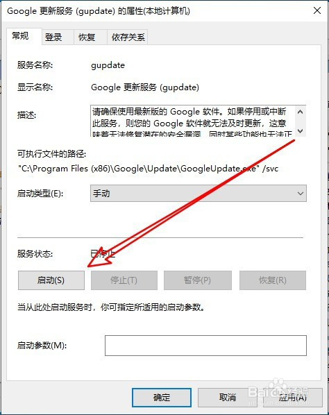 接着在打开的Google更新办事的窗口中点击启动按钮。
