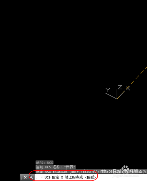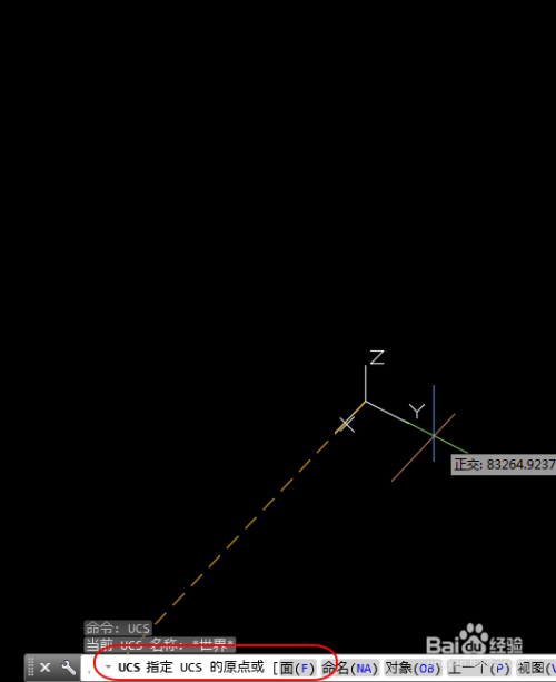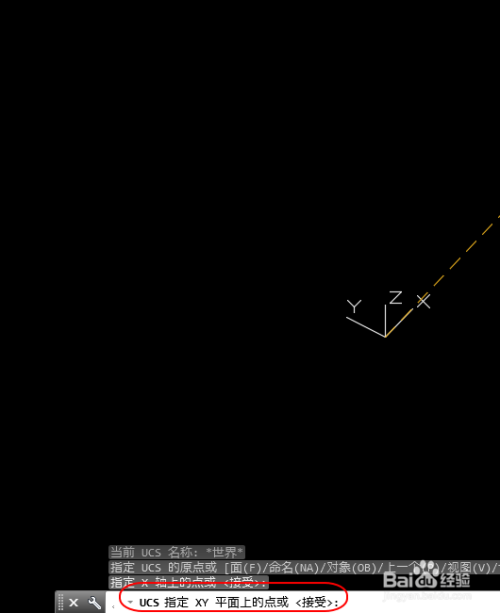 第二步,号令执行后,按照号令栏提醒,首先指定UCS的原点。