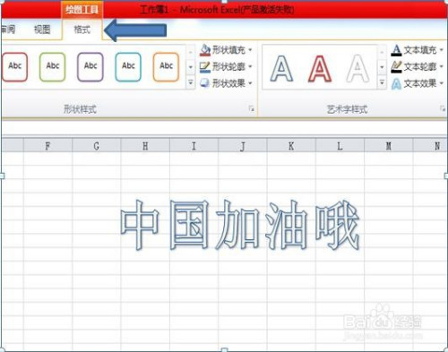 6.点击格局按钮,可以对艺术字的填充、外形轮廓、外形结果进行设置