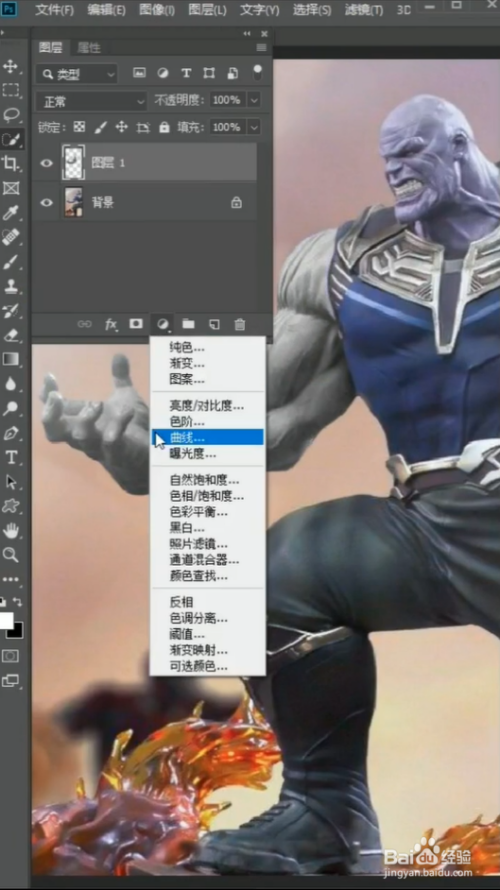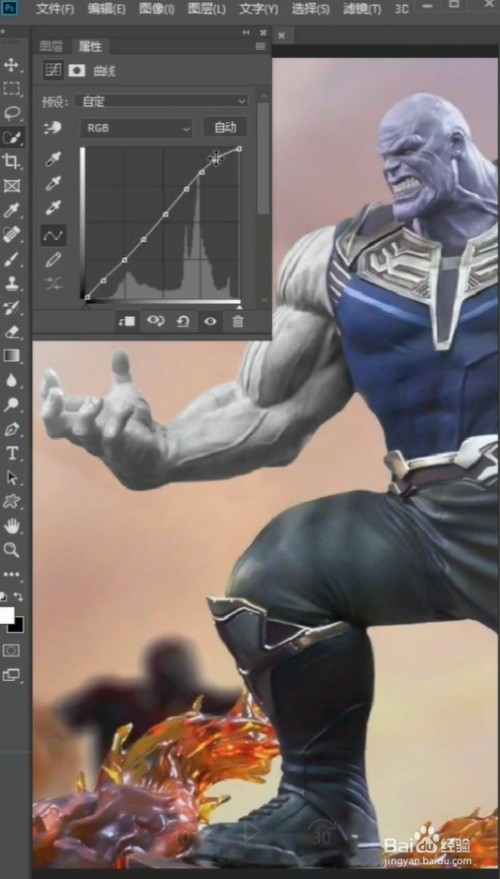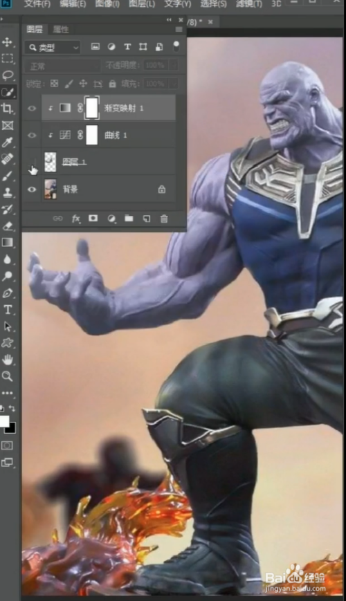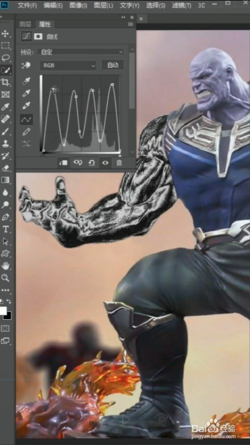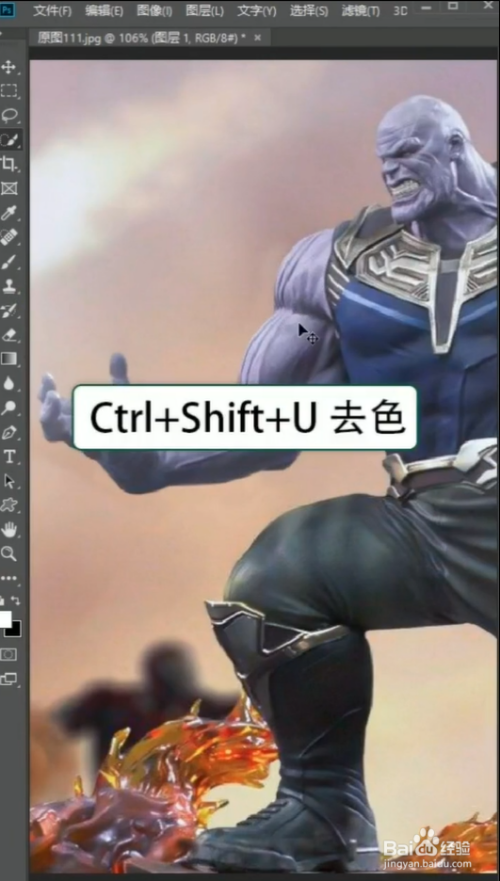 利用快速选择东西,选出灭霸的胳膊,再按Ctrl+J复制出来,按Ctrl+Shift+U给他去色。
