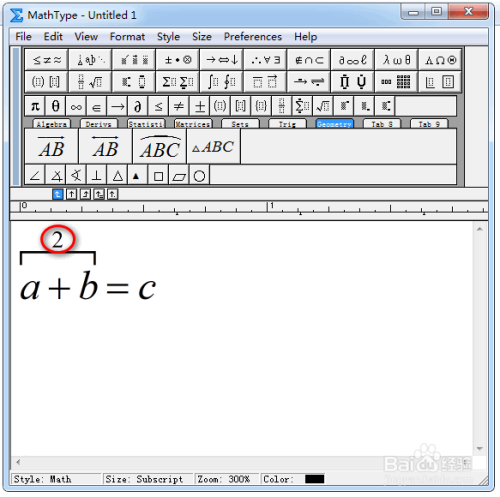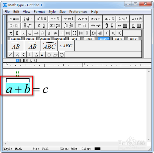 然后,选中需要设置的式子,并在菜单栏中找到并点击“上部中括号”符号,具体如图所示: