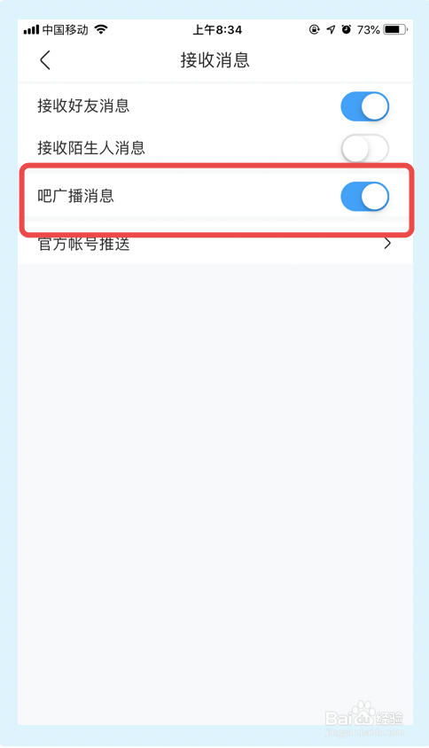 6.在接下来的界面,点击【吧广播动静】选项,完当作以上步调百度贴吧app即可封闭吧广播动静功能。