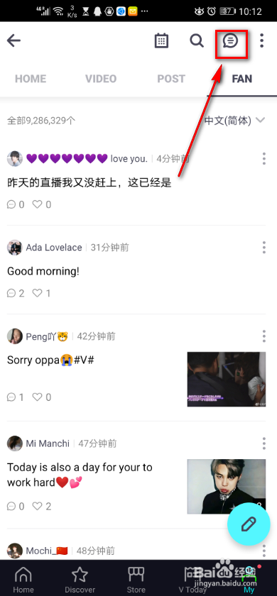 点击右上角气泡图标。
