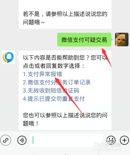 输入【微信支付可疑买卖】点击【1】选项。