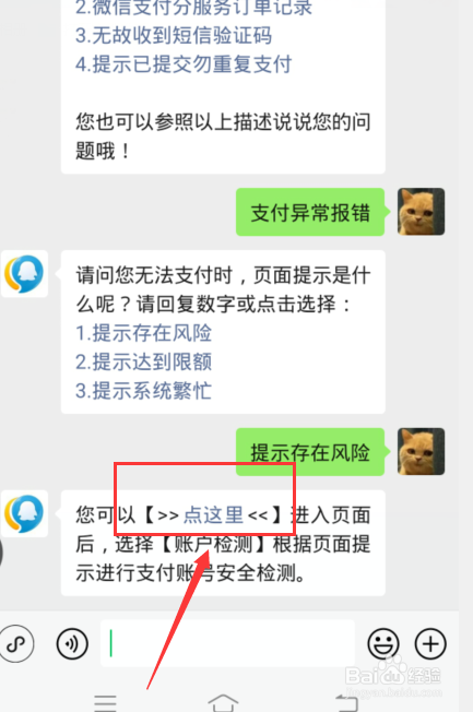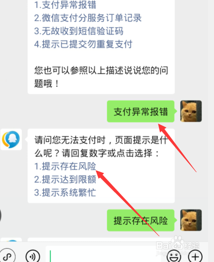 4、显示【支付异常报错】点击【1】存在风险选项。