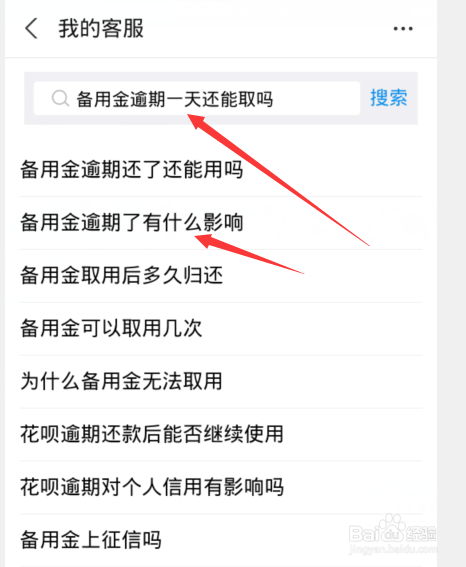 2、搜刮【备用金】点击进入搜刮成果。