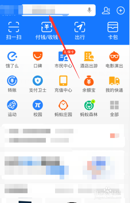 1、进入支付宝首页点击上方的搜刮选项。