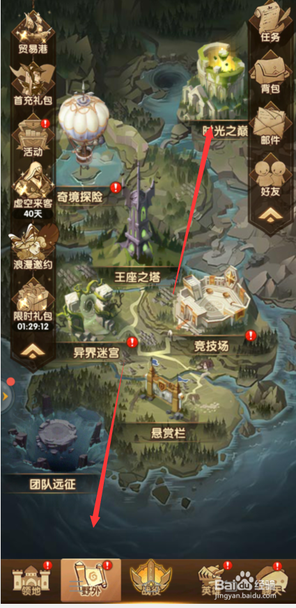 1、剑与远征在野外点击【光阴之颠】选项。