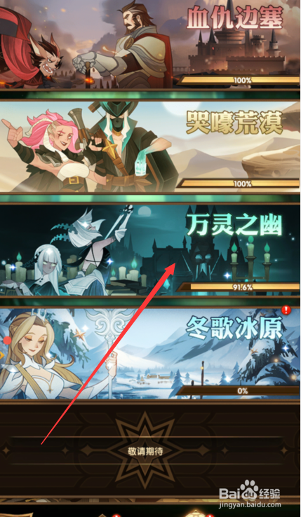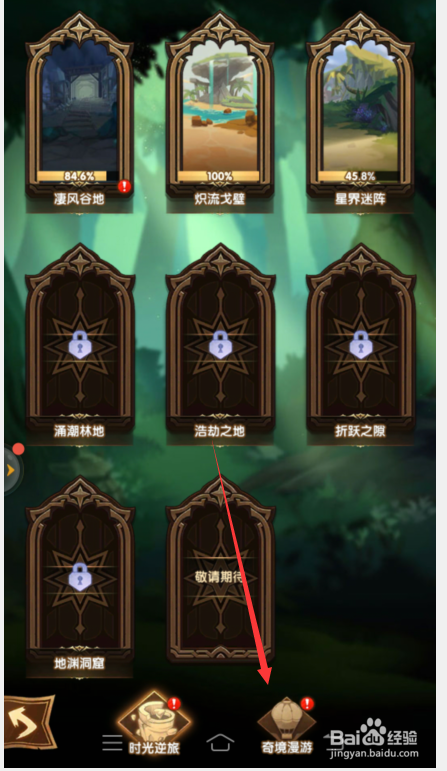 在【奇境漫游】点击已经通关的【万灵之幽】。