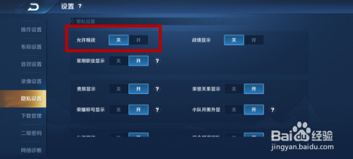 接着就能看到许可不雅战这个选项是开着的。