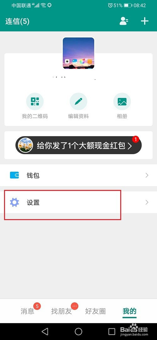 第二步进去连信我的界面,点击设置