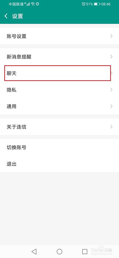 第三步在连信设置之后,点击聊天