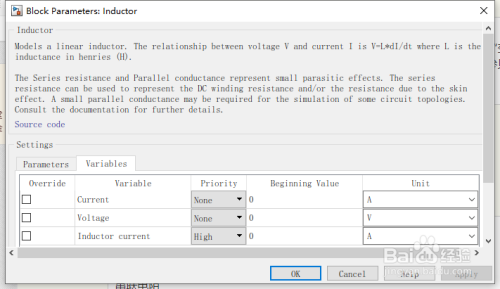 电感器块为线性电感器建模,如下式所述: