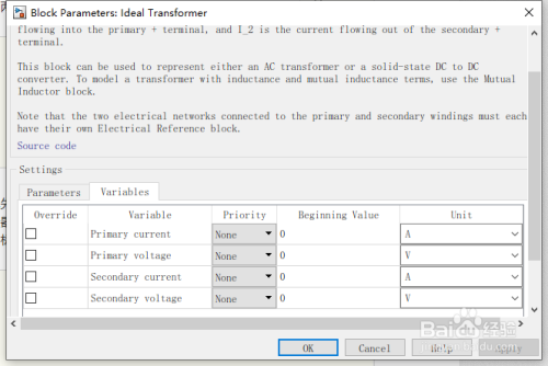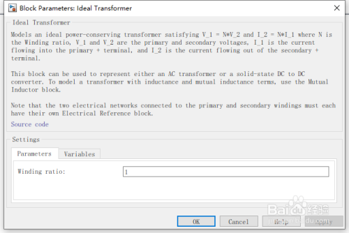 此块可用于暗示交流变压器或固态DC-DC转换器。要用电感和互感项对变压器进行建模,请利用互感器块。
