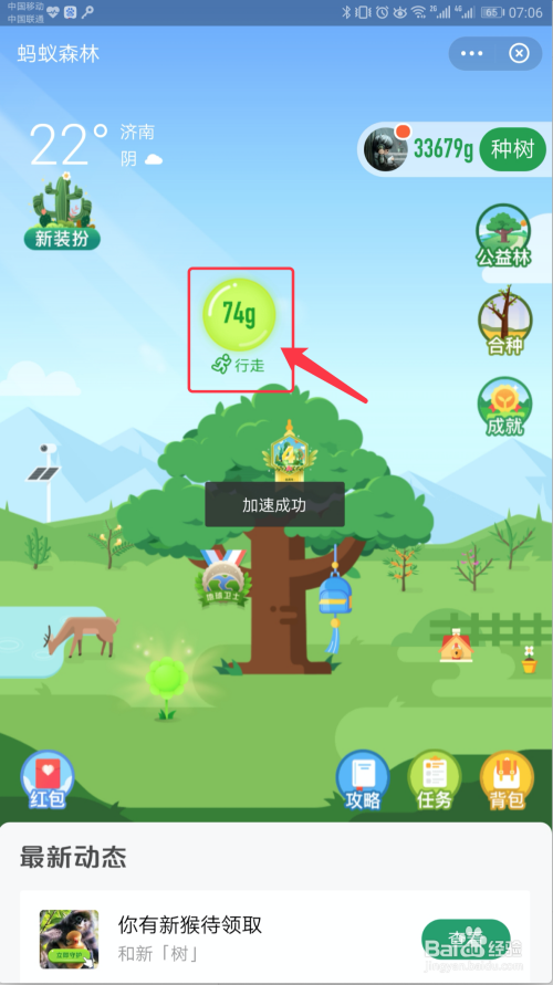 提醒【加快当作功】,即可收取能量,如下图所示。