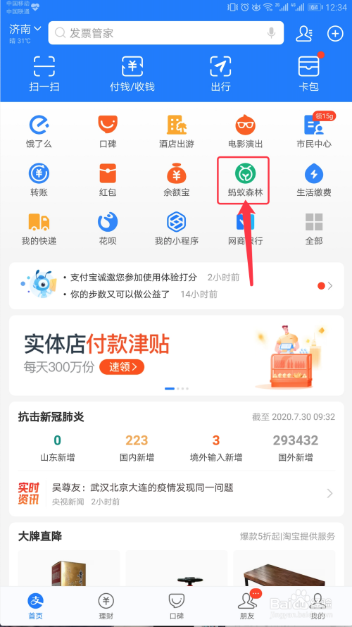 在首页,点击【蚂蚁丛林】,如下图所示。
