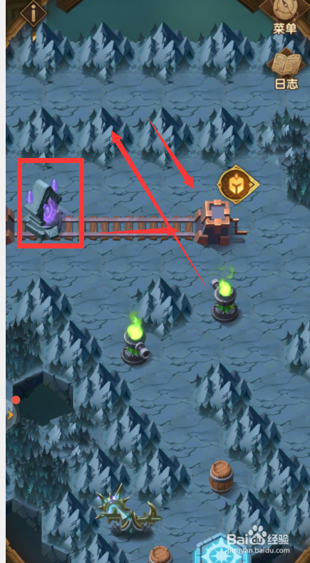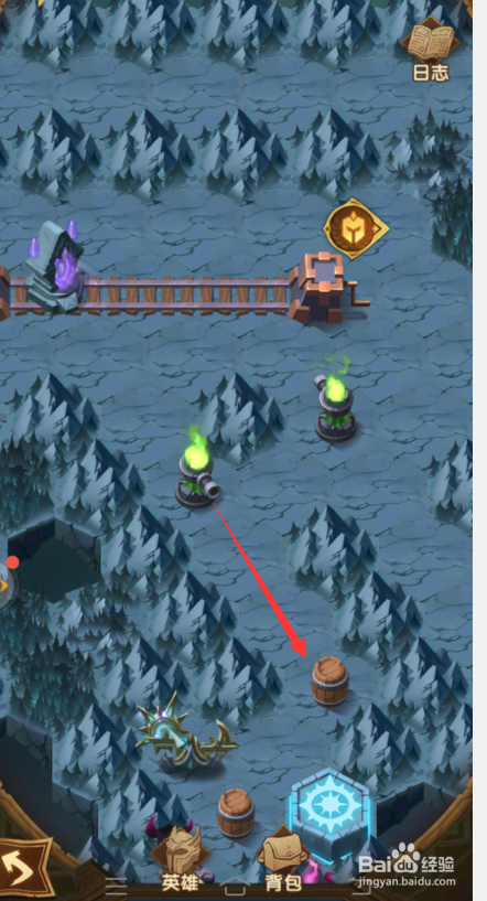 5、点击炮台击碎第一个木桶转到右侧地图。