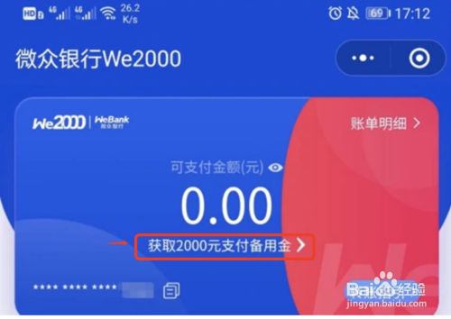 开户当作功后点击“账户余额”下方的“获得支付备用金”进行申请