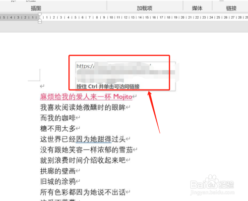 超链接完当作后,文字颜色会发生改变。将鼠标移动到超链接文字上方,可以看到网址会显示出来。