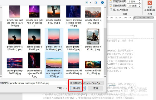 拖动图片,将图片布满页眉。点击“封闭页眉和页脚”。