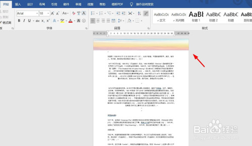 电脑中打开word文档。双击页面顶部位置,调出页眉。
