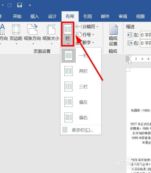 然后选择“三栏”。
