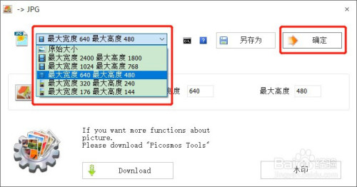 点窜了图片的宽度跟高度后,点击JPG页面右上角的【确定】