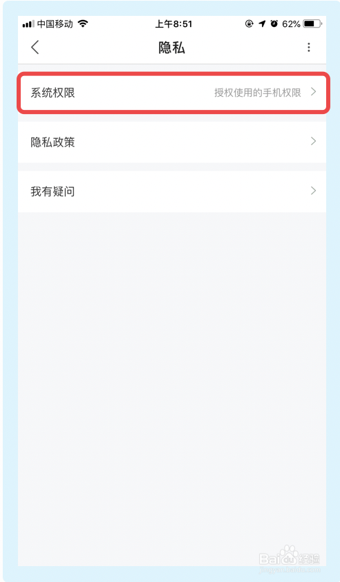 4.在【隐私】界面,点击【系统权限】;