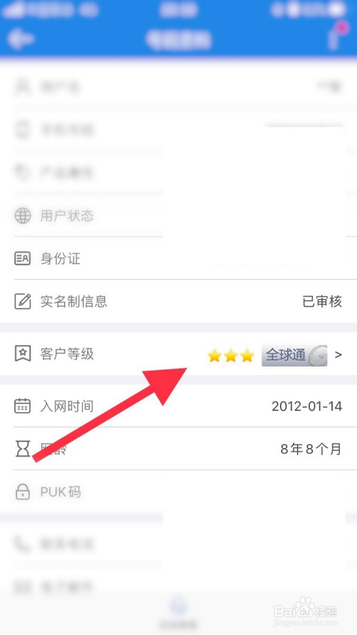 跳转到“号码资料”界面之后,点击“客户品级”也可以领会当前的品级信息