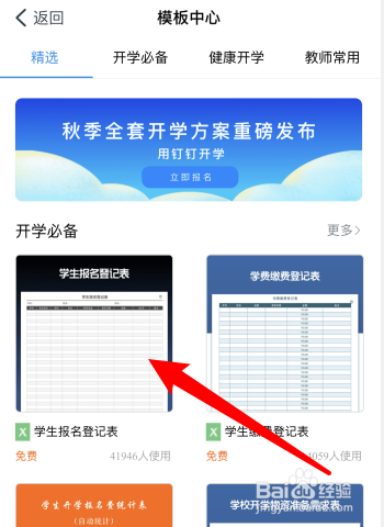3、接下来点击页面里的模板中间