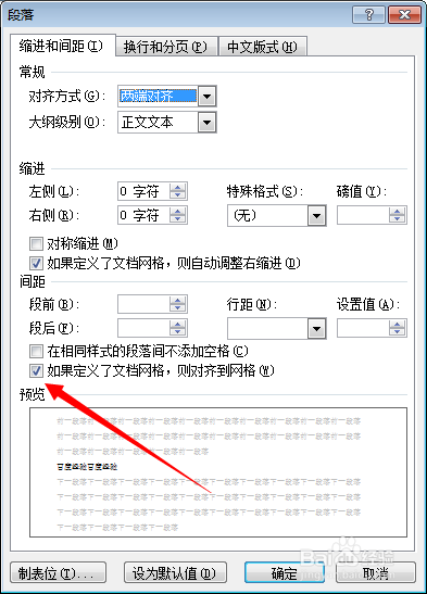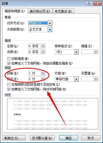 在打开的段落属性界面中,找到间距那一项,去失落“若是界说了文档收集,则对齐到网格”前面的勾。