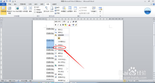 在word文档中,编纂文字格局时,有时看到段落两行字间距很大,需要将行间距调小。打开word文档,选中需要调整行间距的文字,按鼠标右键,在显示的菜单中选中段落。