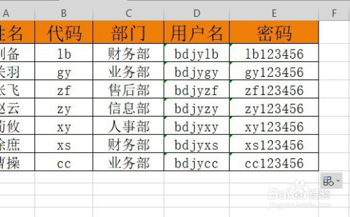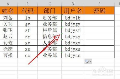 接着生当作用户名后,用快速填充按钮填充下面其他的单位格。