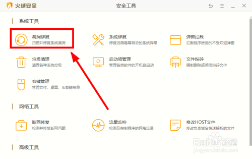 用火绒平安软件主动修复系统缝隙的操作步调如下:
